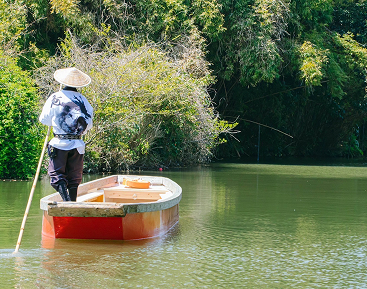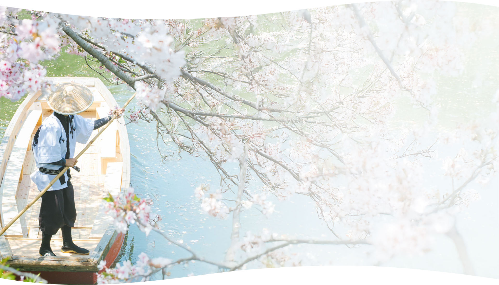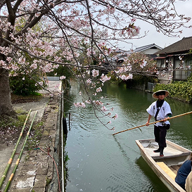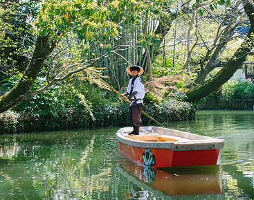 和舟に揺られながら、四季折々の風景と、情緒あふれる町並みを船頭の巧みな竿さばきとユーモアに富んだ語りが、旅を一層豊かに彩ります。